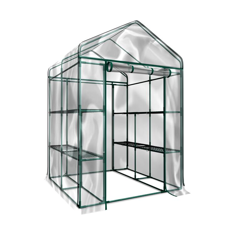 Begehbares Gewächshaus mit PVC-Abdeckung und 8 Regalen