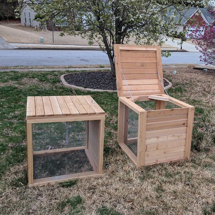 Belüfteter Komposter mit herausnehmbaren Seitenteilen und verzinktem Drahtgitter. Ideal für schnelle Kompostierung, schützt vor Schädlingen und ist leicht zu bedienen.