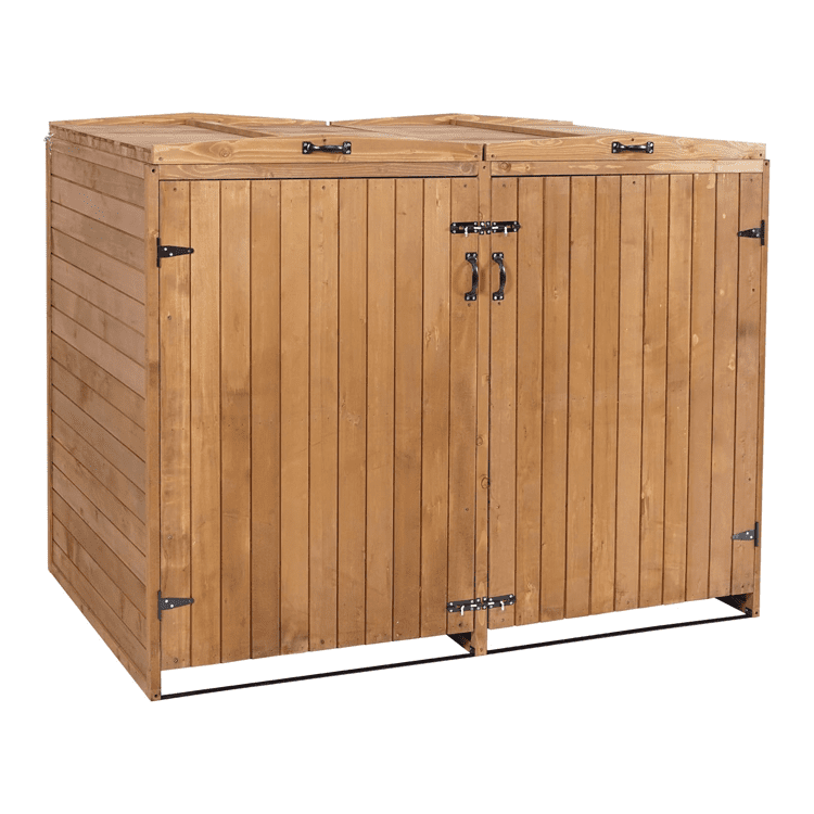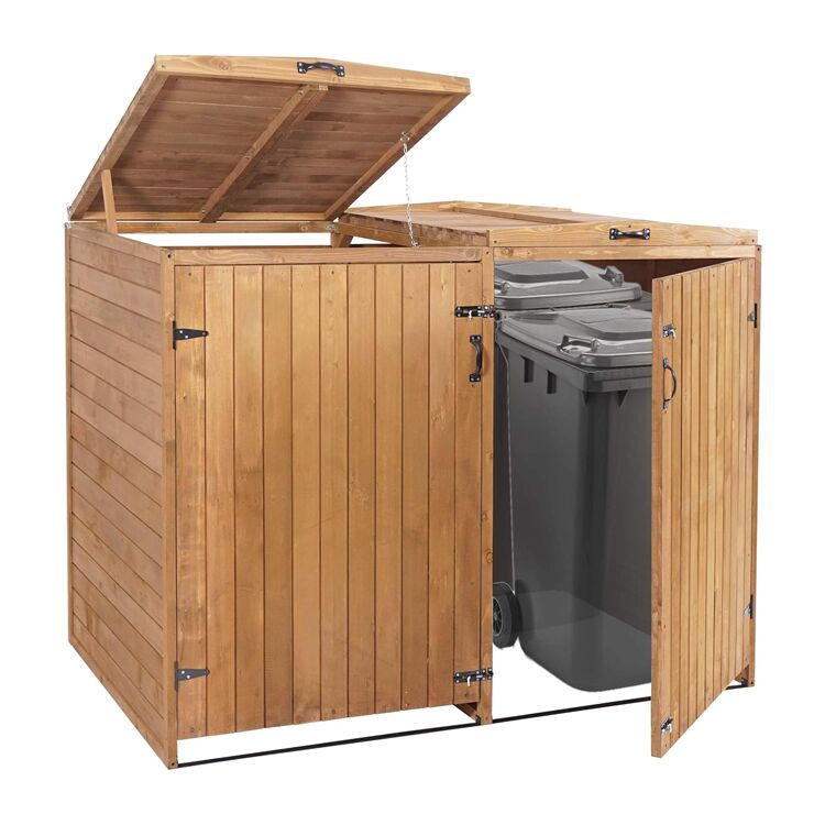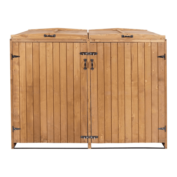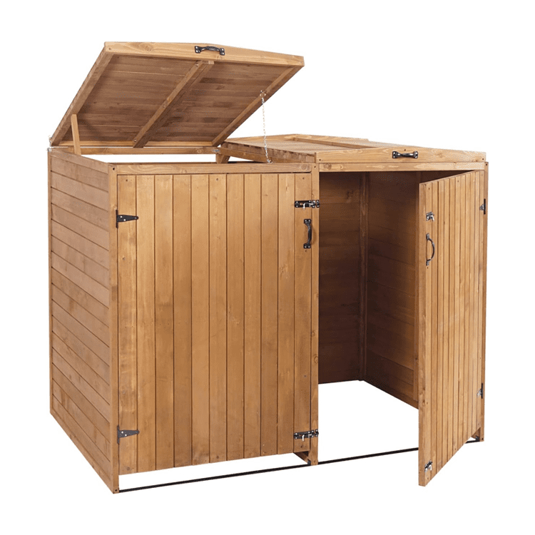 Erweiterbare Mülltonnenbox aus Massivholz für 2-4 Tonnen. Mit verschließbaren Türen, windgeschützten Deckeln und praktischen Griffen. Ideal für Gärten.