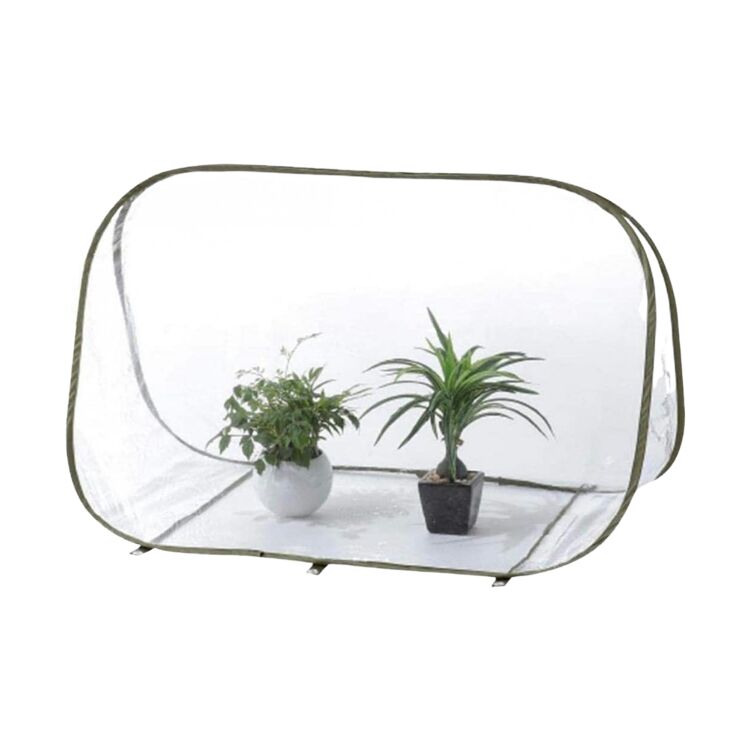 Pop-Up-Gewächshaus aus transparenter PVC-Folie für Innen/Außen. Schützt Pflanzen vor Frost, Regen und Schädlingen. Mit Stahlrahmen, Reißverschluss und Erdspießen. Leicht aufzubauen und zu verstauen.