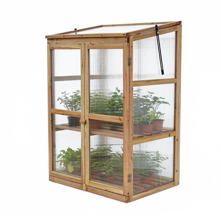 Dieses kompakte Gewächshaus aus Holz ist ideal zur Verlängerung der Vegetationsperiode und zum Schutz von Pflanzen bei verschiedenen Wetterbedingungen. Mit einem öffenbaren Dach und zwei Einschüben bietet es optimale Belüftung und platzsparende Lagerung für Gemüse, Kräuter oder Zierpflanzen. Es eignet sich perfekt für Balkone, Terrassen oder Gärten und kombiniert Funktionalität mit mobiler Flexibilität.