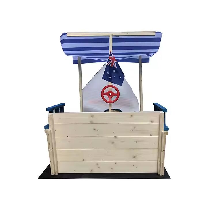 Ce bac à sable en forme de bateau, doté d’un store et d’une bâche de protection, est conçu pour stimuler la créativité des enfants en extérieur. Fabriqué en bois robuste et sans échardes, il assure sécurité et durabilité. Idéal pour les jardins, cours ou aires de jeux.