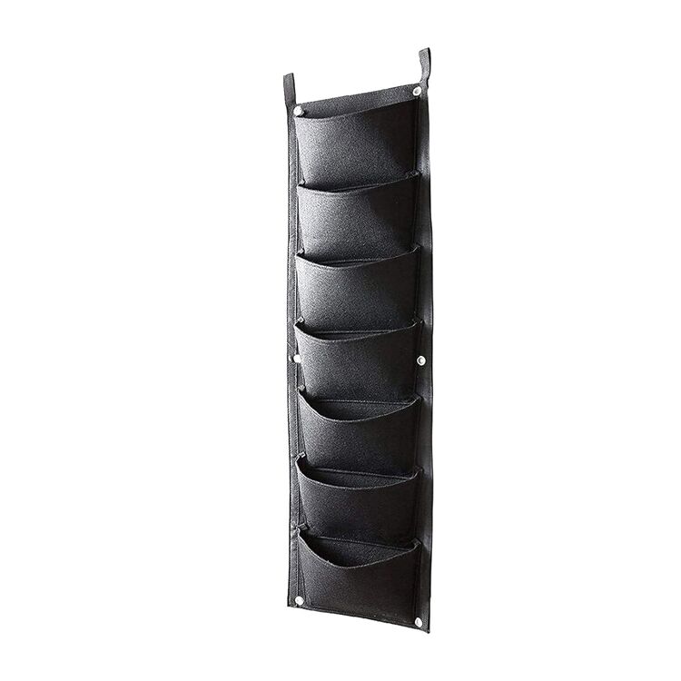 Sac de jardin mural 7 poches en feutre recyclé (100×30 cm). Gain de place, drainage parfait pour herbes, fleurs ou légumes. Fixation facile, idéal pour balcons et murs verticaux.