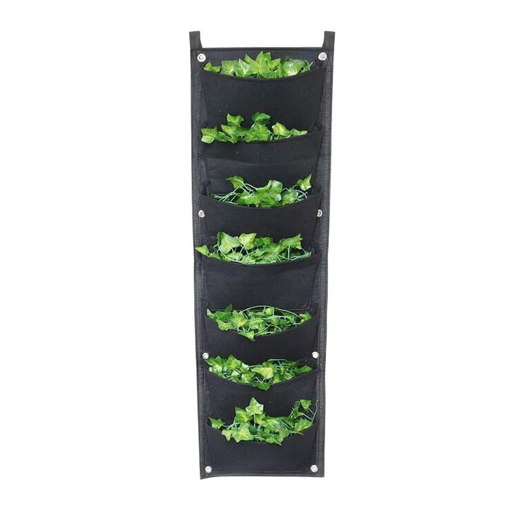 Ce sac de culture mural à 7 poches en feutre recyclé (100 x 30 cm) transforme les murs, clôtures ou balcons en jardins verticaux spacieux. Idéal pour cultiver des herbes aromatiques, fleurs ou légumes en intérieur/extérieur, il allie gain de place, respirabilité et drainage optimal.