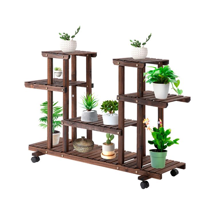 Ce support de plantes 4 étages en bois massif de sapin (114 × 33 × 80 cm) est idéal pour organiser et mettre en valeur vos plantes en pot à l’intérieur comme à l’extérieur. Grâce à ses 6 tablettes spacieuses et ses roulettes amovibles, il allie fonctionnalité et mobilité pour s’adapter à vos espaces de vie.