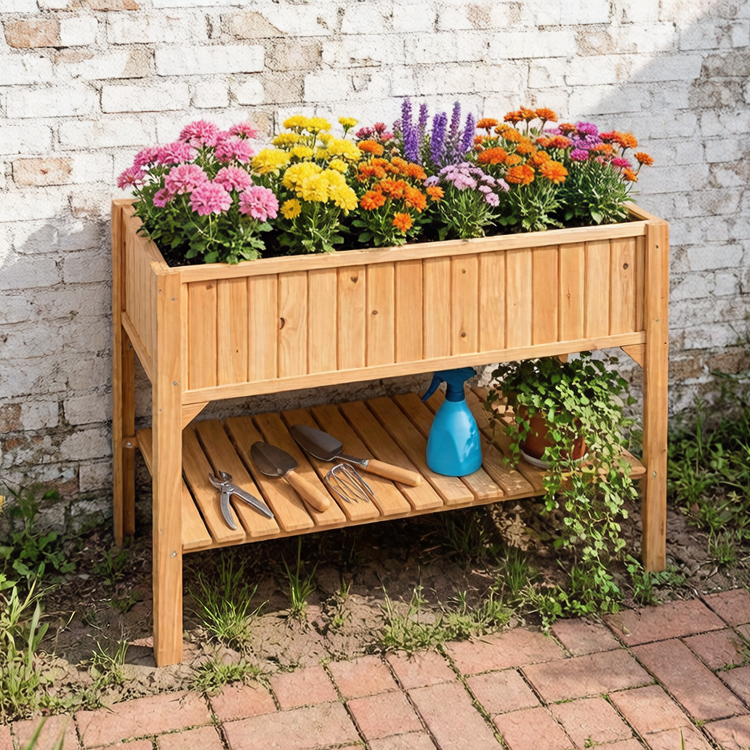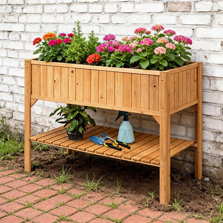 - Stockage intégré : L’étagère inférieure spacieuse accueille les outils, le terreau et les accessoires d’arrosage.