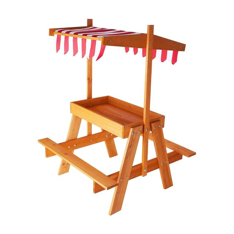 : Passe facilement du jeu avec le sable au repas, optimisant l’utilisation de l’espace extérieur. - Toile ajustable anti-UV
