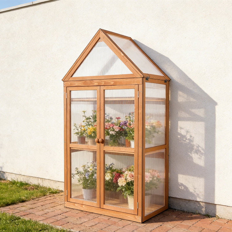 This 3-tier mini greenhouse cabinet is an ideal compact solution for year-round plant cultivation, designed for both indoor and outdoor use on patios, balconies, or in gardens. Crafted from sustainable fir wood, it features transparent polycarbonate panels that provide excellent thermal insulation and uniform light diffusion, effectively protecting seedlings, herbs, and frost-sensitive plants from cold weather. The unit includes three height-adjustable shelves, each capable of supporting significant weight, offering flexibility for various plant sizes. With its space-saving design and durable construction, this greenhouse is well-suited for a 3 Tier Mini Greenhouse importer serving the European market, ensuring reliable performance in diverse climates.