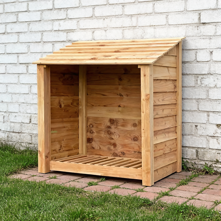 This ventilated outdoor firewood storage shelter (88×44×157cm) is designed to keep logs dry, organized, and easily accessible. Crafted from durable, weather-resistant fir wood, it features a raised base and strategic airflow gaps to protect firewood from ground moisture and accelerate drying. Ideal for patios, gardens, or decks, this compact yet robust unit includes an optional shelf for storing kindling or tools, making it a practical firewood storage solution for importers. Its tool-free assembly ensures quick setup, while the treated timber construction guarantees long-term resilience against decay and UV damage .
