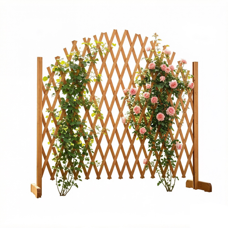 This versatile wooden trellis provides a sturdy and attractive support system for climbing plants and flowers. Its freestanding design allows for immediate placement anywhere in the garden without the need for permanent installation or digging. The accordion-style frame adjusts easily to different widths, making it a flexible solution for various outdoor layouts.