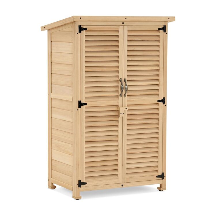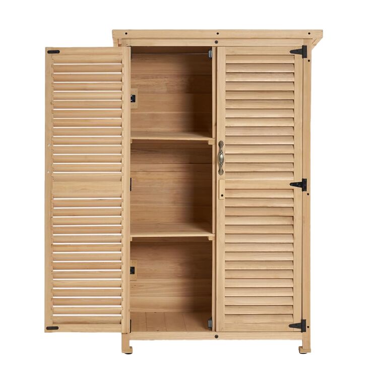 Crafted from sturdy fir wood, this Outdoor Garden Storage Cabinet is a practical solution for organizing garden tools, seasonal items, and patio essentials. Designed with a compact, rustic style, it fits seamlessly in small outdoor spaces like patios or gardens—ideal for partners seeking reliable options for bulk order needs.