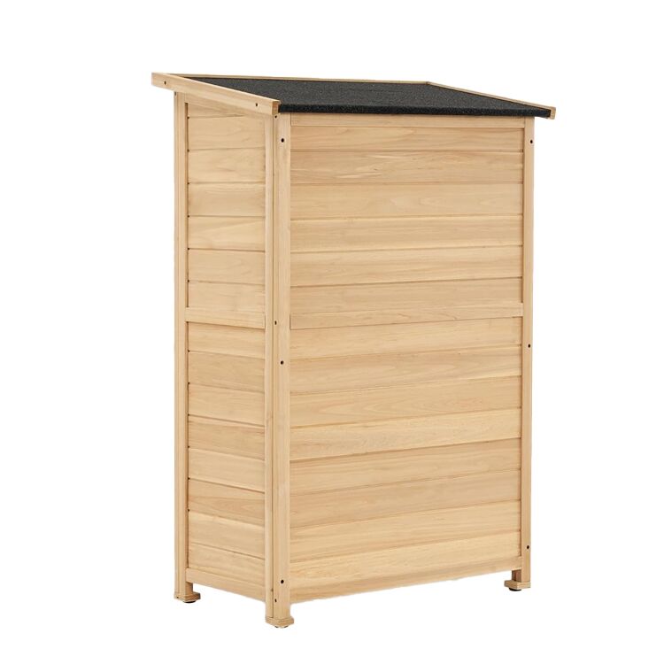 This Outdoor Garden Storage Cabinet, made of sturdy fir wood, has a waterproof sloping roof and adjustable shelves. It suits bulk orders, supports customization, and keeps garden/patio essentials organized—compact, rustic, perfect for small outdoor spaces.