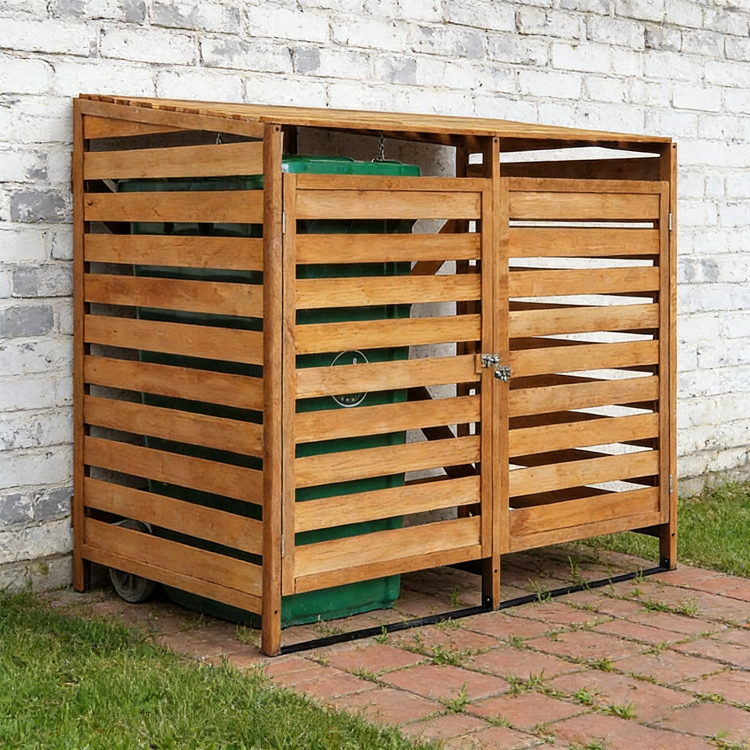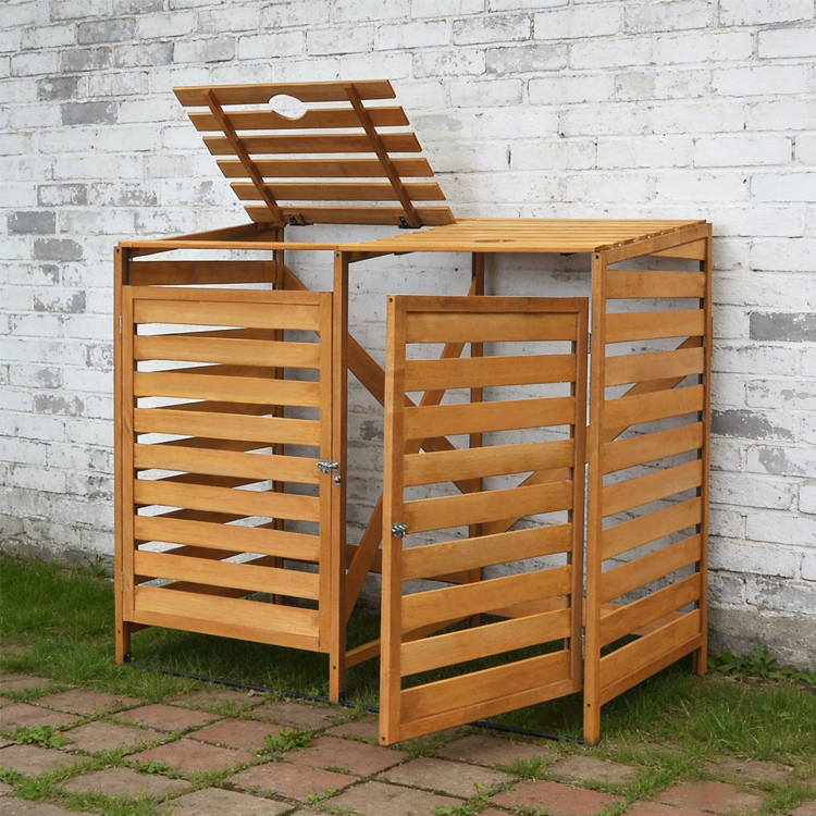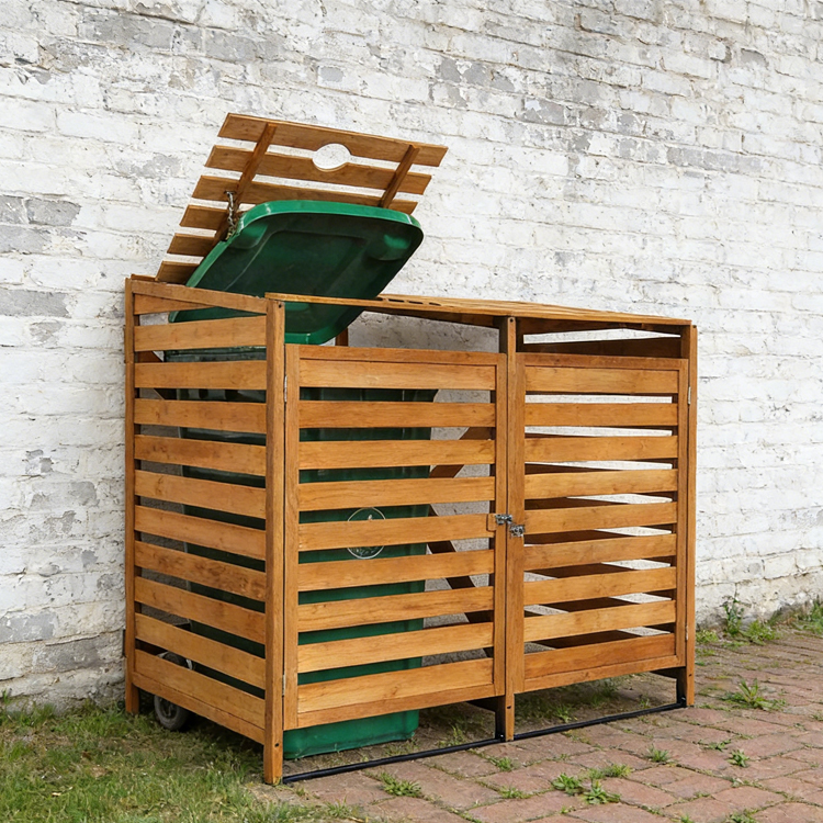 This dual-compartment wooden wheelie bin enclosure provides a tidy and efficient storage solution for two standard 240L wheelie bins. Designed with a focus on durability and functionality, it features a slatted construction that ensures proper ventilation while shielding bins from weather damage. The unit includes lockable doors for secure access and an elevated base to prevent moisture buildup. Ideal for gardens, driveways, or patios, it arrives flat-packed for easy assembly and is well-suited for garden center Wheelie Bin Enclosures wholesale partnerships seeking reliable outdoor storage options.
