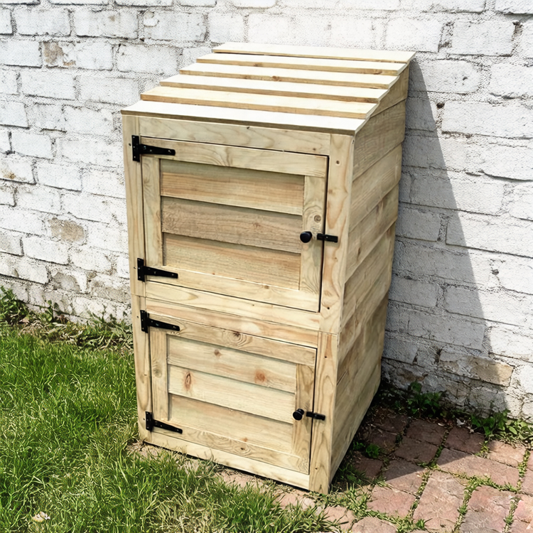 This robust wooden storage cabinet is engineered to securely house two standard recycling bins outdoors. Constructed from pressure-treated pine for superior rot resistance, it combines a rustic aesthetic with long-lasting durability. The unit features lockable doors, a weather-resistant build, and includes two personalized address labels for efficient waste management. Ideal for gardens, patios, or driveways, its compact design ensures easy access while protecting bins from the elements. We specialize in supplying customized Garbage Can Storage bulk orders tailored to B2B clients’ specifications.