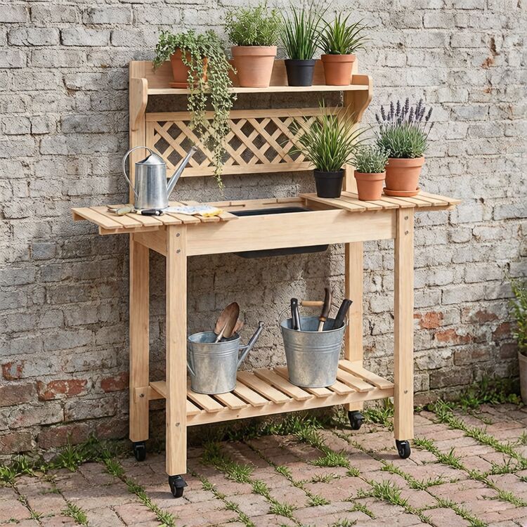 The Wood Potting Bench With Storage is a practical and durable outdoor workstation designed for everyday gardening tasks. Made from solid natural wood, it combines a spacious work surface with multi-level storage to improve efficiency and comfort during planting, potting, and maintenance. Its classic rustic design makes it suitable for gardens, patios, greenhouses, and other outdoor spaces while offering reliable functionality for both home and light commercial use.